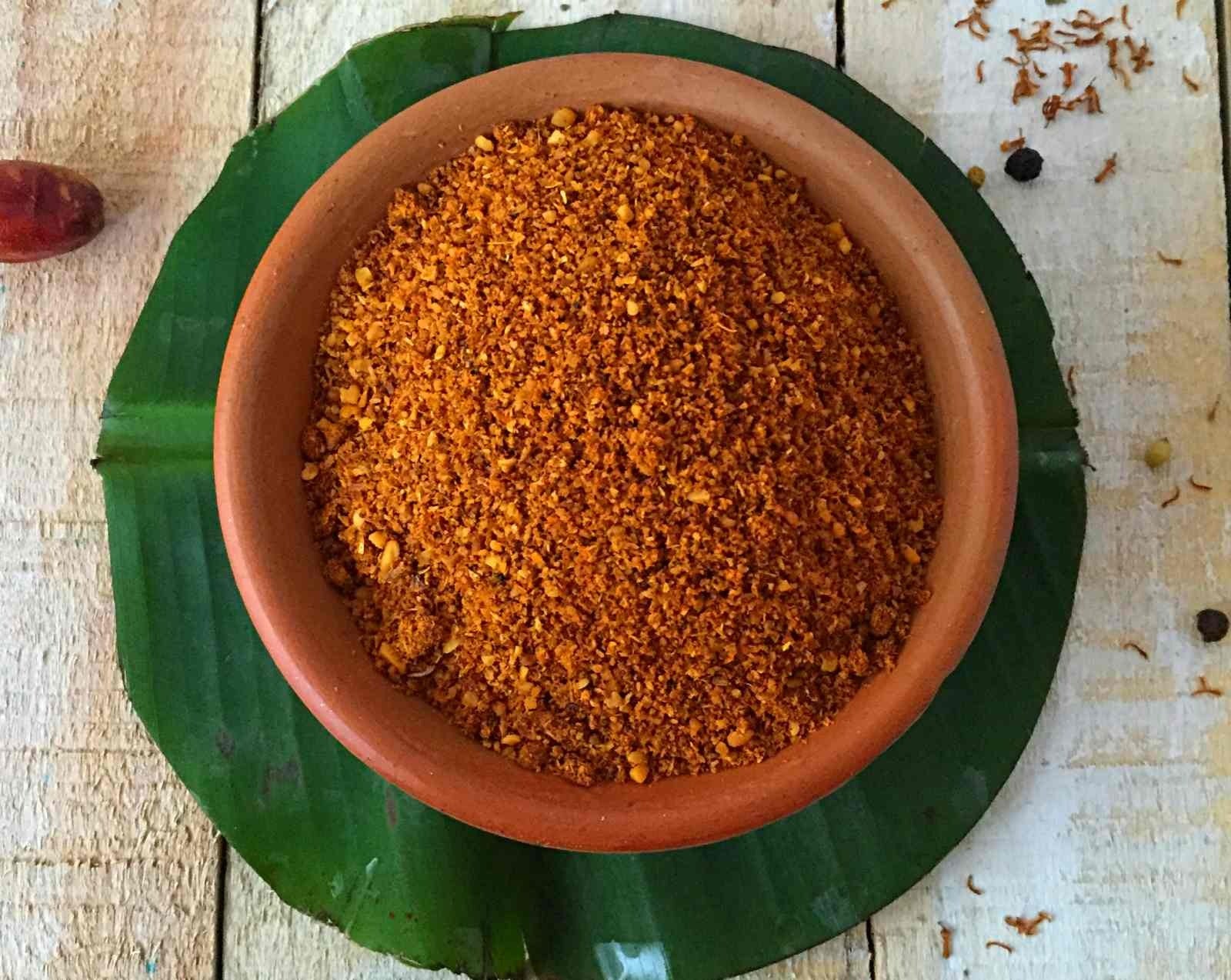 A traditional South Indian spice blend used to make rasam, a tangy and spicy soup. This powder includes tamarind, chili, and other spices, creating a flavorful and comforting dish.