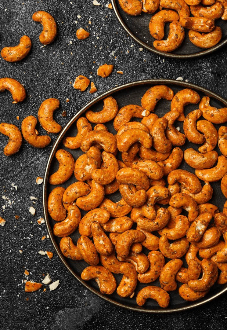 Cheesy cashews typically refer to cashew nuts that have been flavored or seasoned to mimic the taste of cheese. These cashews can come in various forms, such as cheese-flavored cashew snacks or ingredients in cheesy recipes. They often combine the creamy texture of cashews with savory cheese-like flavors, achieved through ingredients like nutritional yeast, garlic, or other seasonings. Cheesy cashews are popular in vegan and non-vegan diets alike, offering a rich and satisfying snack option or enhancing the flavor profile of dishes ranging from salads to main courses.